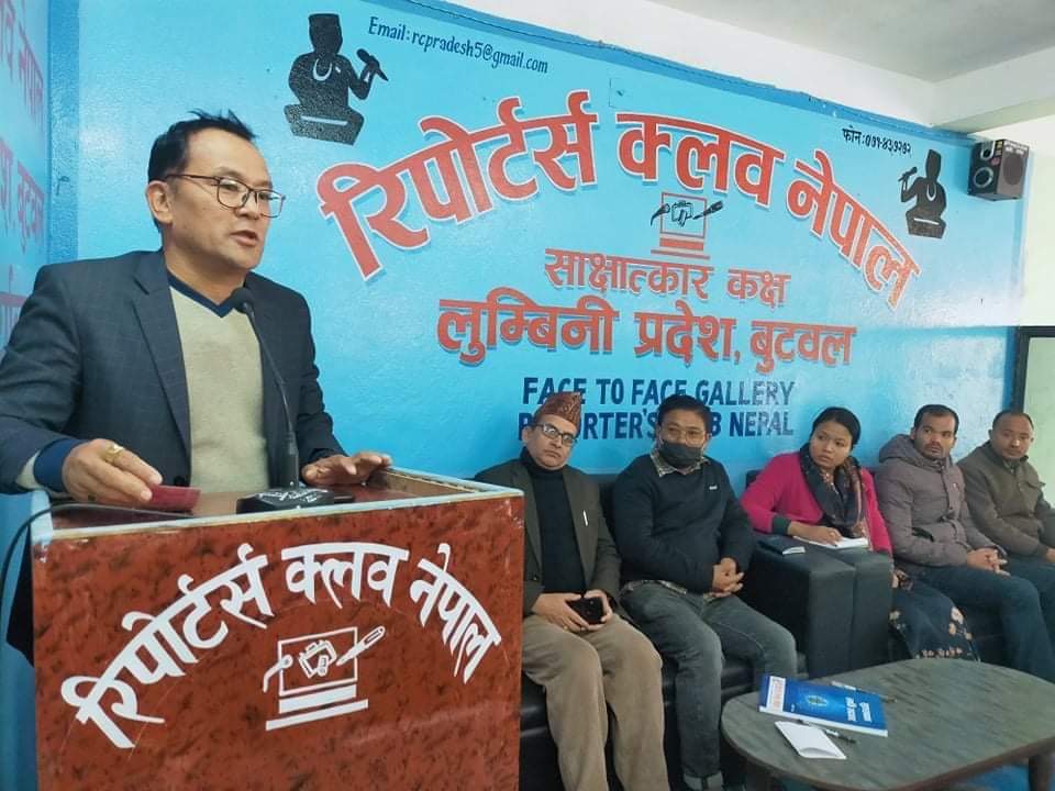 युवा संघ नेपाल र अनेरास्ववियुद्वारा आज रिपोर्टर्स क्लव नेपाल लुम्बिनी प्रदेशमा आयाेजित पत्रकार सम्मेलनमा बाेल्दै उनले काम गर्न दिईएन भन्दै प्रधानमन्त्री हिडेकाे भन्दै गलत काम गर्नेहरु अहिले एक ठाँउमा उभिएकाे बताए ।‘सबैलाेभी पापीहरु पदकाे लाेभमा काेहि मन्त्रीमण्डलमा गएका छन्,काेहि केन्द्रिय सदस्यमा गए,काेहि मन्त्री बन्दैछन् रे, याे खुसी हुने बेला हाेइन ।’ उनले सुनाए ।