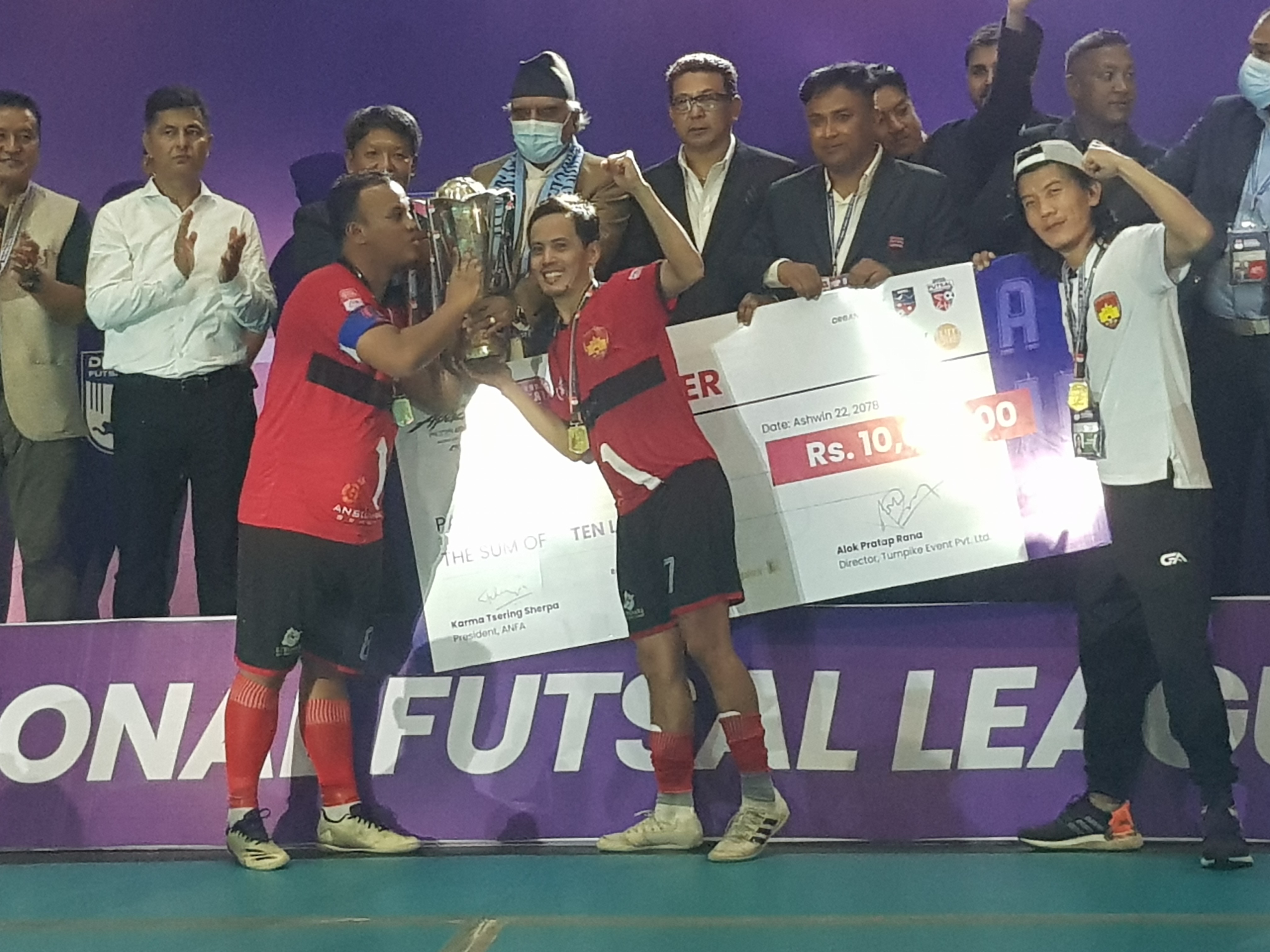 पोखरा, २२ असोज– राष्ट्रिय ए डिभिजन फुटसल लिगको उपाधी स्पोट्र्स क्यासलले जितेको छ । पोखरा रंगशाला बहुउदेश्यीय कभर्डहलमा भएको फाइनल खेलमा काठमाण्डौँको शंखमुल फुटसललाई ४–२ गोल अन्तरले हराउँदै क्यासलले उपाधी घरमै राख्न सफल भएको हो । उपाधीसंगै क्यासलले नगद १० लाख रुपैँयाको साथमा ट्रफि, मेडल र प्रमाणपत्र प्राप्त ग¥यो । उपविजेता शंखमुलले ५ लाख रुपैँया प्राप्त ग¥यो ।