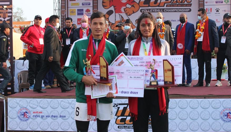 प्रतियोगिताको सर्वोत्कृष्ट खेलाडी पुरुषतर्फ आर्मीका दानबहादुर बुढा क्षेत्री र महिलातर्फ एपीएफका सरस्वती चौधरी घोषित हुँदै जनही रु २५ हजार पुरस्कार पाउनुभयो ।
