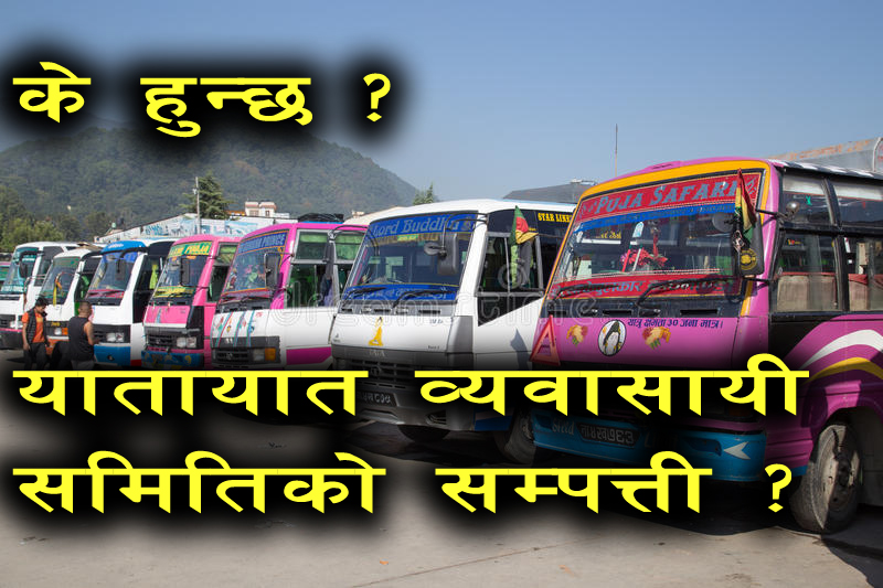 सरकार र यातायात व्यवसायीको बिचको टकराव जारी छ । सरकारले सम्पुर्ण बस व्यवसायी समितिहरु खारेज गरिदिएको छ । खारेजमा परेका बस व्यवसायी समितिहरु आर्थीक रुपमा पनि सम्पन्नता भएका समितिहरु छन् । ति समितिका अर्बौैको सम्पत्ती अब के हुन्छ भन्ने प्रश्न सबैमा छ । यसै विषयमा तयार पारिएको सामाग्री :