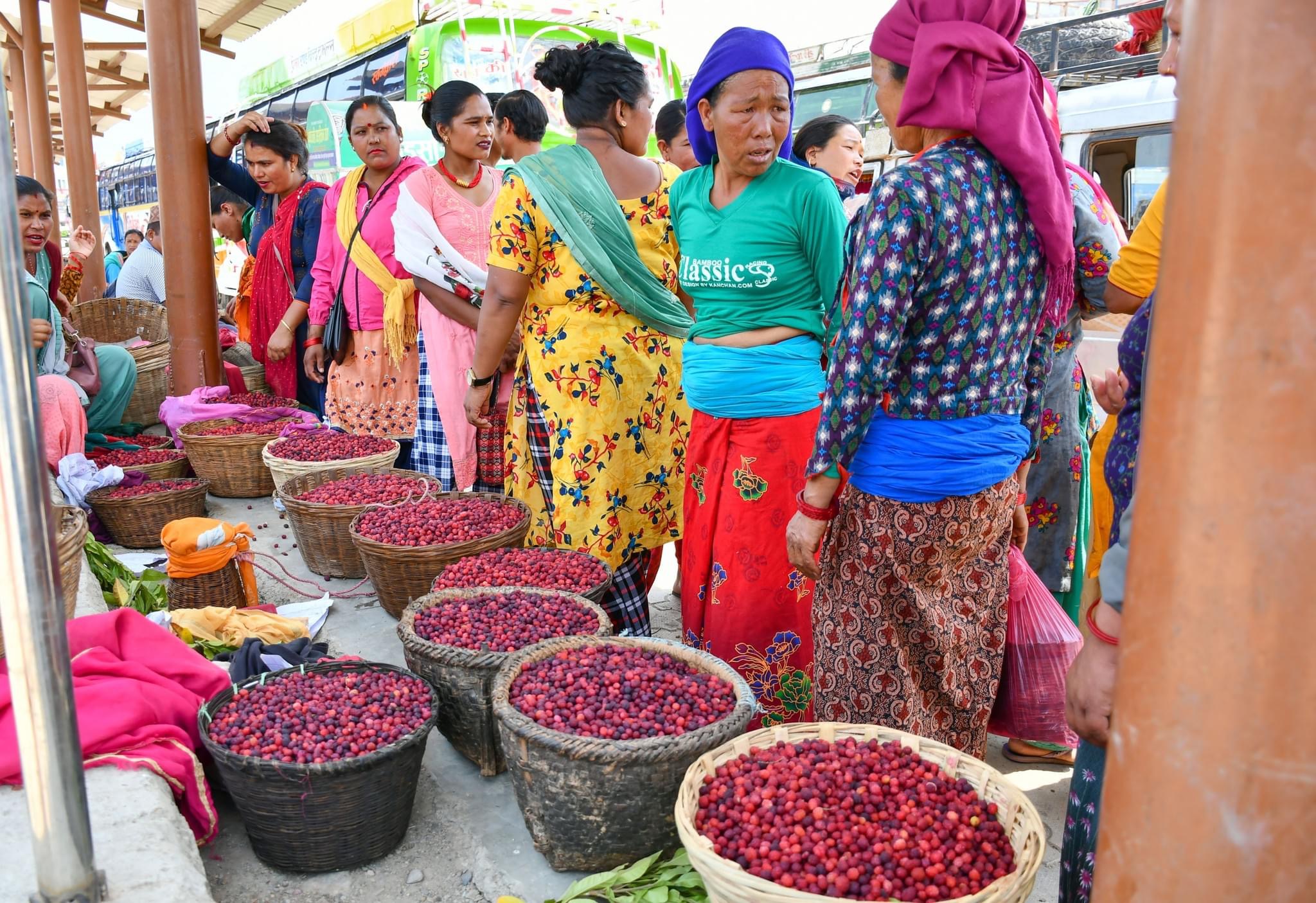 दाङको घोराही- १४ स्थित बसपार्कमा मंगलबार रोल्पा रुन्टीगढी–४ सुर्पालदेखि ल्याएको काफल खरिद गर्दै घोराहीका स्थानीय महिला व्यापारी । जंगलमा फल्ने काफल बिक्री गरेर महिलाहरुले घर खर्चको जोहो गर्ने गर्दै आएका छन् । तस्बिर : कुलदीप न्यौपाने/रासस