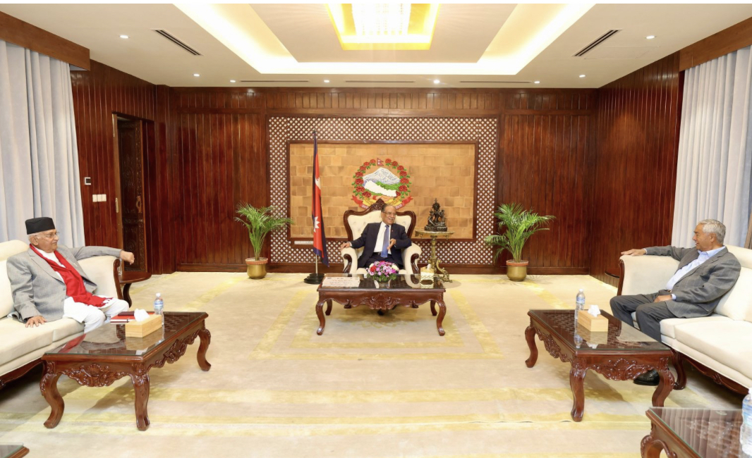 काठमाडौं प्रधानमन्त्रीको सरकारी निवास बालुवाटारमा तीन दलका शीर्ष नेताहरु बीच भेटवार्ता जारी छ । प्रधानमन्त्री एवम नेकपा माओवादी केन्द्रका अध्यक्ष पुष्पकमल दाहाल प्रचण्ड, एमालेका अध्यक्ष केपी शर्मा ओली र कांग्रेस सभापति शेरबहादुर देउवाबीच बालुवाटारमा जारी भेटवार्तामा शान्ति प्रक्रिया र संवैधानिक परिषद्को बिषयमा छलफल भइरहेको प्रधानमन्त्रीको सचिवालयले जनाएको छ ।