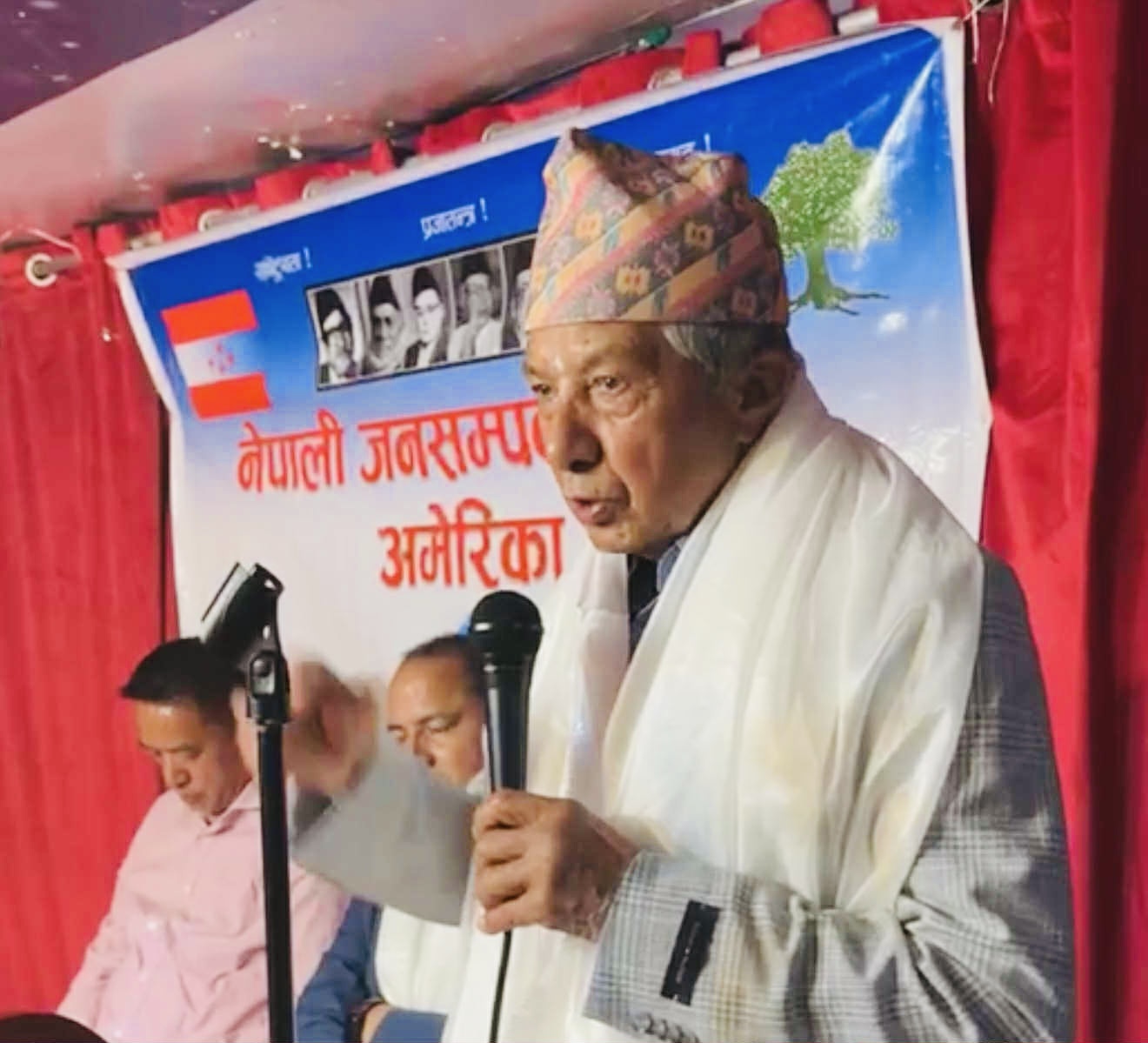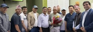 अध्यक्ष ध्रुव पौडेल, जनसम्पर्क समिति न्यूयोर्ककी उपसभापति कमला पन्त, युवा नेता निरज केसी र शुभास केसी, एनआरएनए न्यूयोर्कका उपसभापति लक्ष्मी थापा, सचिव राजु तामाङ, पूर्व सचिव वासु लामिछाने