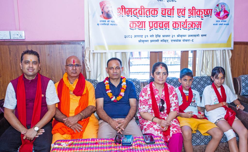 पोखरा । पोखरा ८ रत्नचोकमा रहेको श्रीकृष्ण प्रणामी मन्दिरमा जारी एक महिने श्रीमदवीतक चर्चा एवं श्रीकृष्ण कथा प्रवचन जारी रहेको छ । श्रीमदवीतकको १२ औं दिन सम्म आइपुग्दा भक्तजनहरुको समेत भीड लाग्ने गरेको छ । आगामी श्रावण ३१ गते श्रीकृष्ण जन्माष्टमी सम्म सञ्चालन हुने श्रीमदवीतक चर्चामा प्रतिष्ठित ब्याक्ति संगै उच्च तहका ब्याक्तिहरुले समेत सहभागीता जनाउदै आएका छन ।