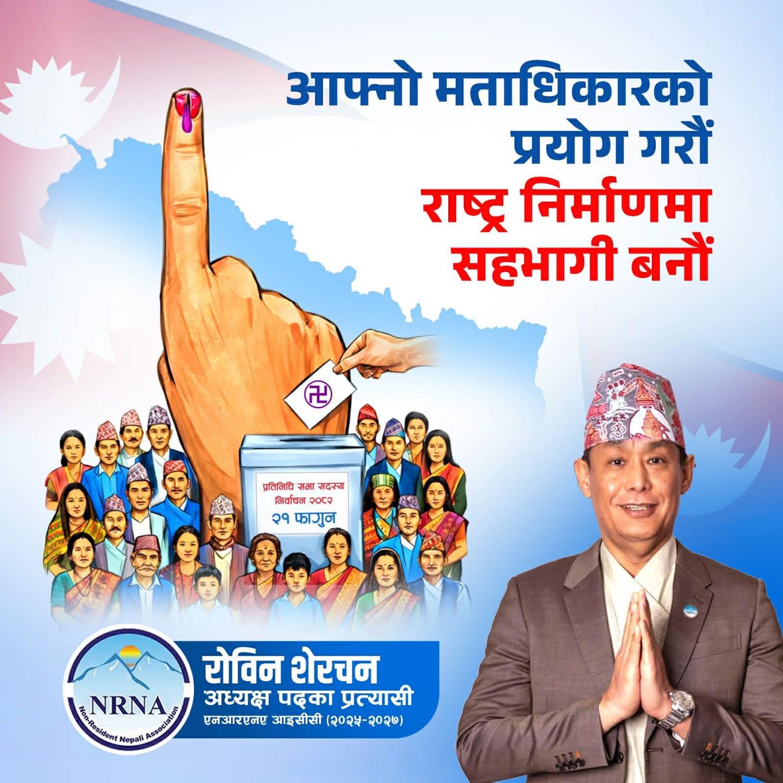 काठमाडौं । पोखराका रोविन शेरचनले गैरआवासीय नेपाली संघ (एनआरएनए) का अध्यक्ष पदका उम्मेदवार दिने भएकोछ । संस्थाभित्र मौलाएको गुटबन्दी र असमझदारी लाई अन्त्य गर्नका लागि आफूले उम्मेदवारी दिने बुधबार एनआरएनए डेलिगेट्सहरुको स्वागतमा आयोजित कार्यक्रममा जानकारी दिएका हुन । एनआरएनएको १२औं महाधिवेशन चैत ३० देखि काठमाडौँमा हुने भएको छ ।