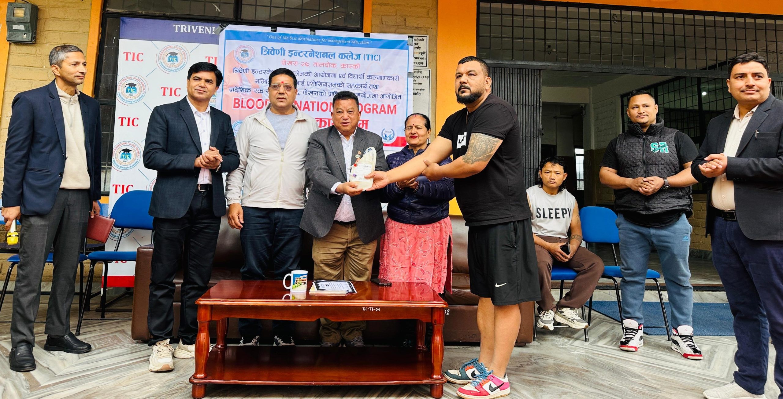 लेखनाथ/ त्रिवेणी इन्टरनेशनल कलेज पोखरा २७ ले आइतबार आयोजना गरेको रक्तदान कार्यक्रममा ६४ प्वाइन्ट रगत संकलन भएको छ ।