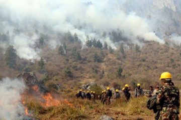 मनाङमा जंगलकाे आगो निभाउन बनाइयाे अग्निरेखा, नियन्त्रण भएन