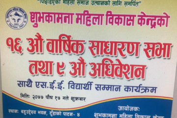 शुभकामना महिला विकास केन्द्रको १६औं बार्षिक साधारणसभा तथा ९औं अधिबेशन शुक्रवार हुने