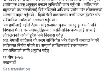 देउवाको अपिल : सरकारको असंवैधानिक कदमविरुद्धको देशव्यापी प्रदर्शनमा सहभागी हुनु