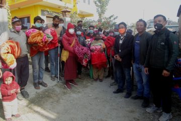 न्याम्डो त्रिरत्न पुननिर्माण समितिद्धारा पोखरामा न्यानो कपडा र खाद्यान्न वितरण